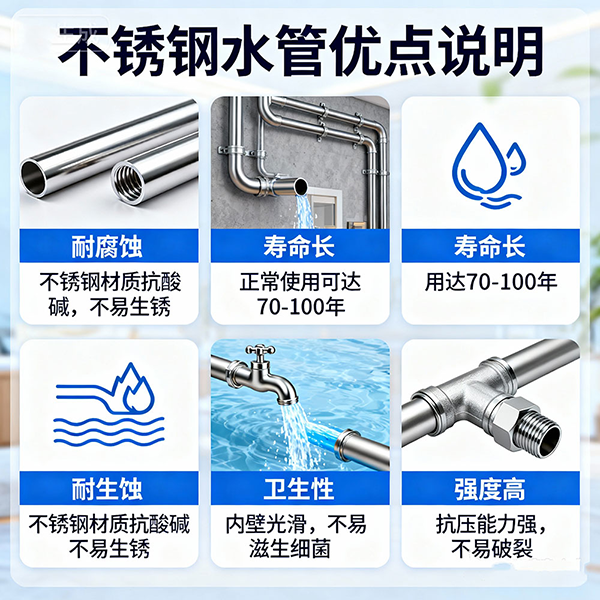 用不銹鋼做水管非常適合,它的優(yōu)點(diǎn)如下: