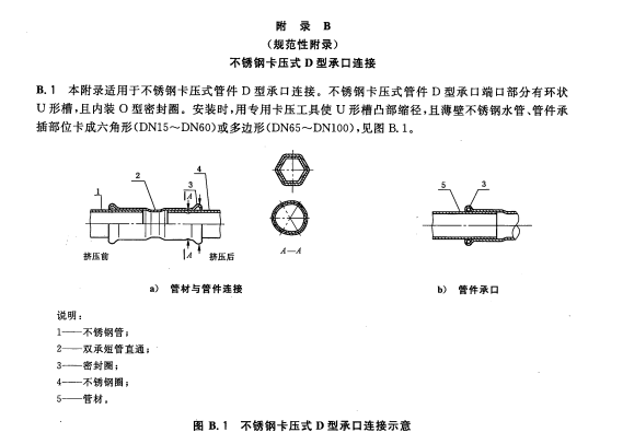 3.4 D 型承口連接:管件承口端部無延伸直段的卡壓連接。