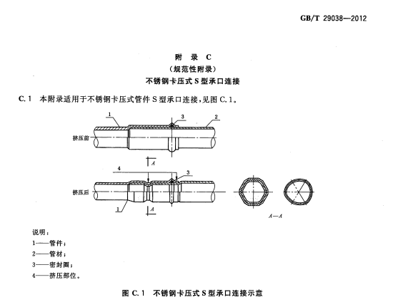 3.5 S 型承口連接:管件承口端部有延伸直段的卡壓連接。