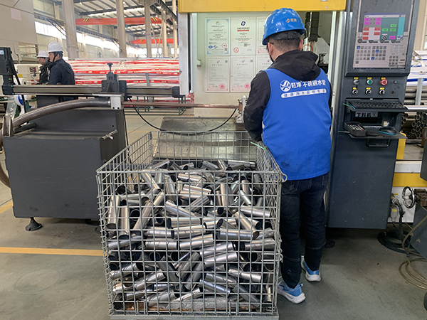 (圖為湖南旺坤管業(yè)生產(chǎn)基地,專(zhuān)業(yè)工人在進(jìn)行衛(wèi)生級(jí)不銹鋼管的卡壓接頭安裝作業(yè)。這種連接方式能確保管道系統(tǒng)的長(zhǎng)期密封與衛(wèi)生安全。)